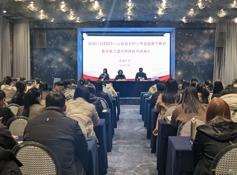 12月15日上午,“国培计划-2025”--山西省农村小学县级骨干教师教学能力提升培训项目(小学语文、小学数学)在我校开班。南通大学教育科学学院党委书记朱丹等参加开班仪式。