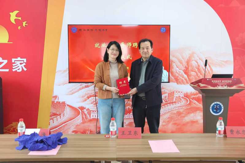 活动现场,王卫东为李小渔颁发教育科学学院就业创业导师聘书,曹阳为其颁发教育科学学院学生成长导师聘书。